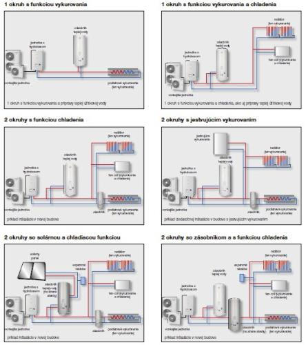Příklady instalaci tepelných čerpadel a jejich napojení na topné okruhy.